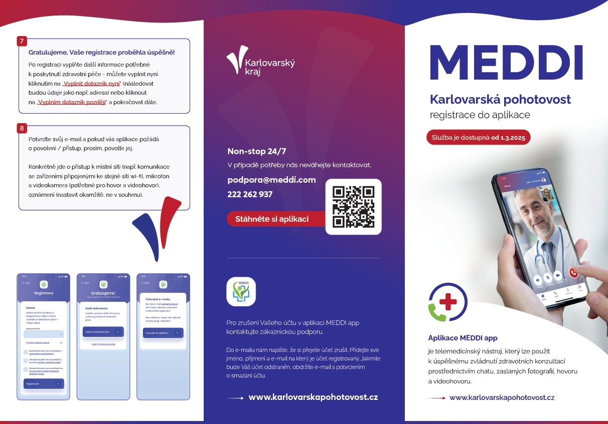Mobilní aplikace se jmenuje MEDDI.app (doporučujeme proklik z webové stránky www.karlovarskapohotovost.cz kde je možnost její stažení pro Google play i App store)